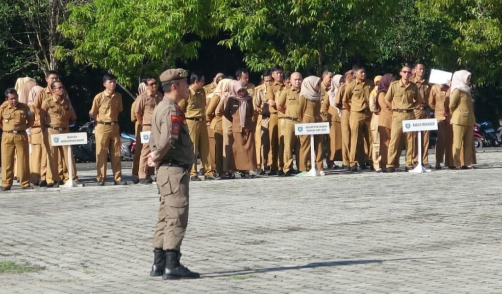 MUARADUA Lenterapena. Com – Pemerintah Kabupaten OKU Selatan laksanakan Apel Pagi pada hari pertama masuk kerja pasca cuti Hari Raya Idul Fitri 1445 H/ Tahun 2024, Selasa (16/04/2024).