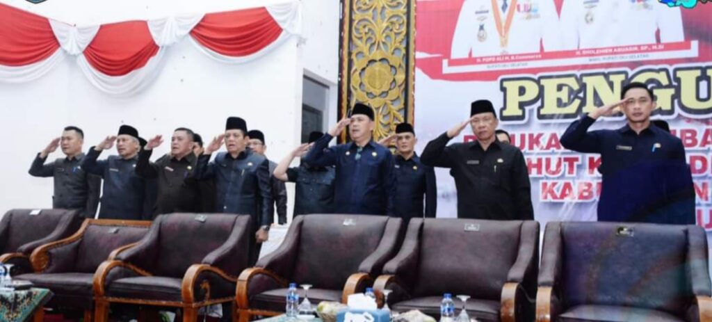 MUARADUA Lenterapena. Com – Wakil Bupati Ogan Komering Ulu Selatan (OKUS), H. Sholehien Abuasir, SP., M.SI., mengukuhkan Paskibraka yang akan bertugas pada Upacara Peringatan HUT Proklamasi Kemerdekaan Republik Indonesia yang Ke-79 di Kabupaten OKU Selatan, di Gedung Kesenian Juara, Kamis (15/08/2024).