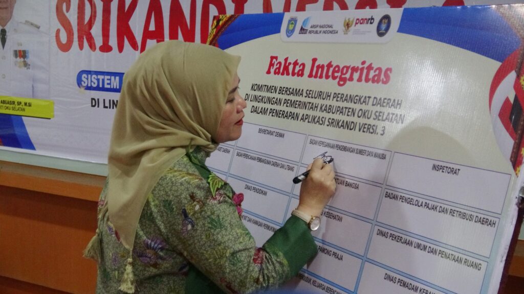MUARADUA Lenterapena. Com – Pemerintah Kabupaten OKU Selatan melalui Dinas Perpustakaan dan Kearsipan Kabupaten OKU Selatan, Launching Aplikasi Sistem Informasi Kearsipan Dinamis Terintegrasi (SRIKANDI) Versi 3 di Lingkungan Pemkab OKU Selatan, Kamis (14/11/2024).