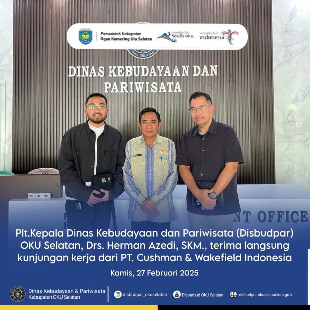 MUARADUA Lenterapena. Com – Plt.Kepala Dinas Kebudayaan dan Pariwisata (Disbudpar) OKU Selatan, Drs. Herman Azedi, SKM., terima langsung kunjungan kerja dari PT. Cushman & Wakefield Indonesia, di Kantor Disbudpar OKU Selatan, Kamis (27/02/2025).