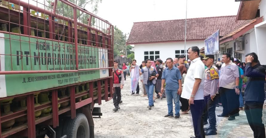 MUARADUA Lenterapena. Com – Bupati Ogan Komering Ulu Selatan (OKUS), Abusama, SH., meninjau langsung Operasi Pasar yang menyediakan Gas LPG 3 kilogram di Kecamatan Muaradua, Kamis (27/03/2025).
