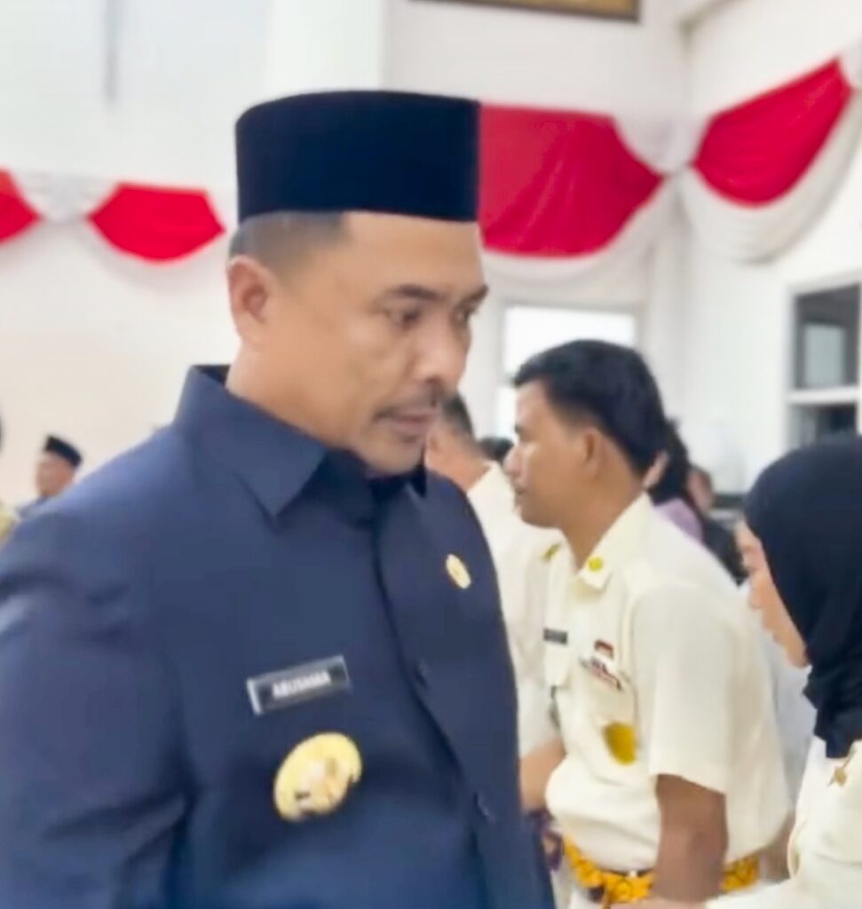 Muaradua Lenterapena. Com – Bupati Ogan Komering Ulu (OKU) Selatan, Abusama, SH menghadiri acara Pengukuhan Pasukan Pengibar Bendera Pusaka (Paskibraka) Tahun 2025 yang berlangsung di Gedung Kesenian Muaradua, Jum’at (15/8/2025).