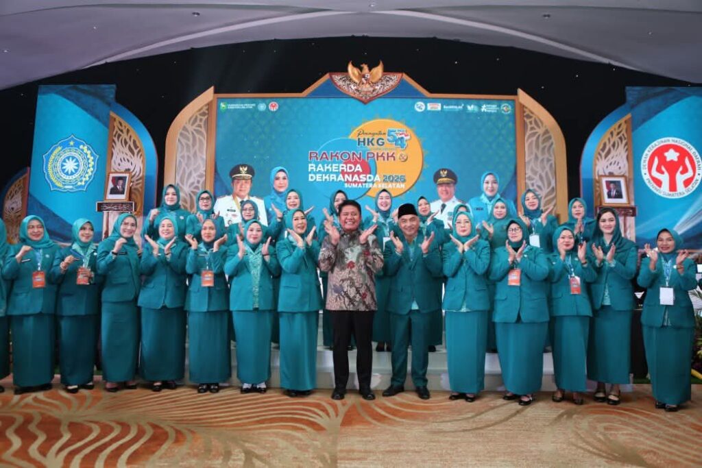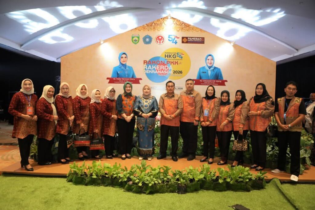 PALEMBANG Lenterapena Com – Ketua Tim Penggerak PKK Kabupaten OKU Selatan Ny. Yohana Abusama menghadiri kegiatan Peringatan Hari Kesatuan Gerak (HKG) PKK ke-54 yang dirangkaikan dengan Rapat Konsultasi (Rakon) PKK serta Rapat Kerja Daerah (Rakerda) Dekranasda Provinsi Sumatera Selatan Tahun 2026. Kegiatan tersebut berlangsung di Grand Ballroom Hotel Aryaduta Palembang, Rabu (1/4/2026).